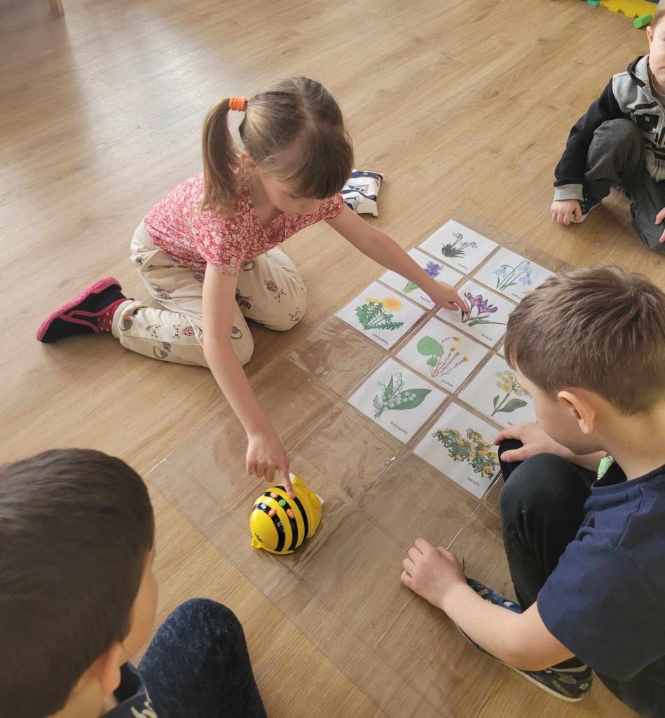 S pomocí Bee Bot včelky děti hledají jarní květiny (rozvoj informatického myšlení využitím robotické hračky)