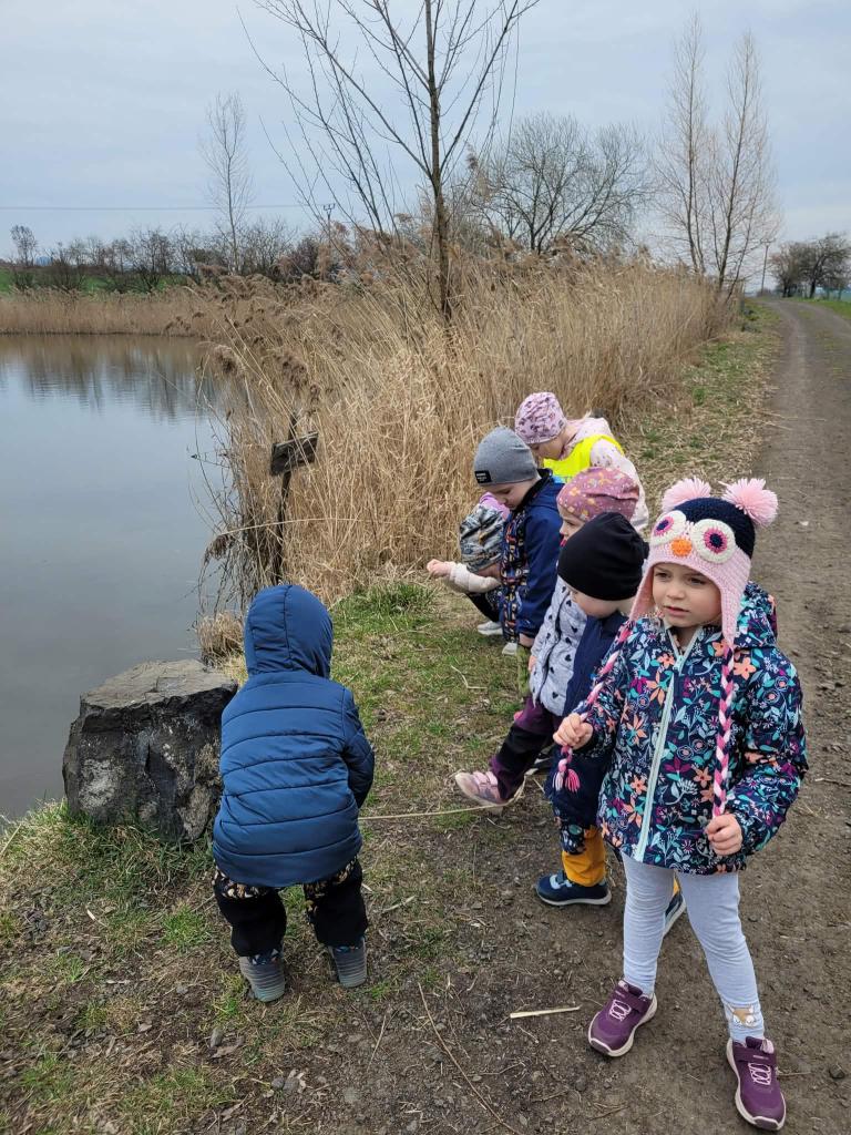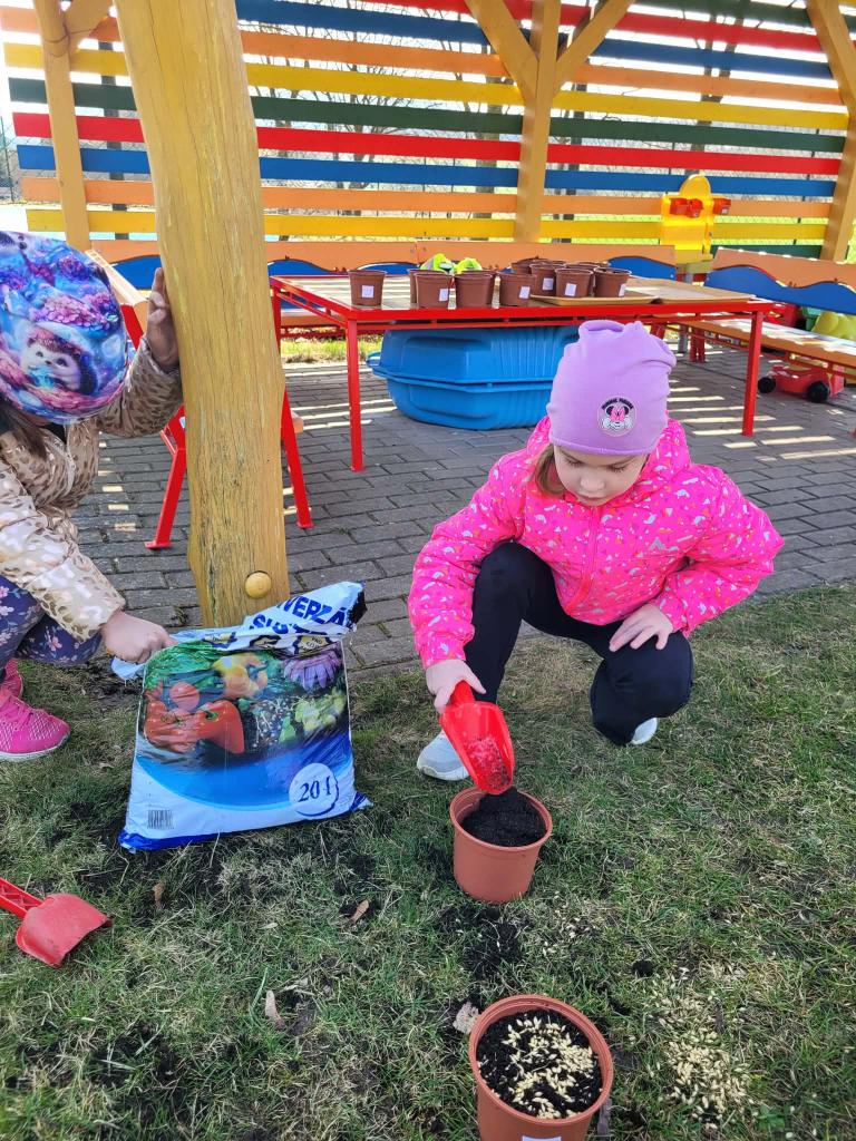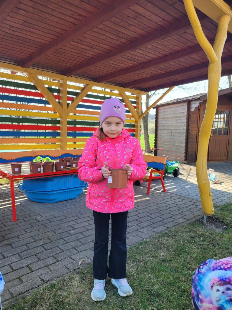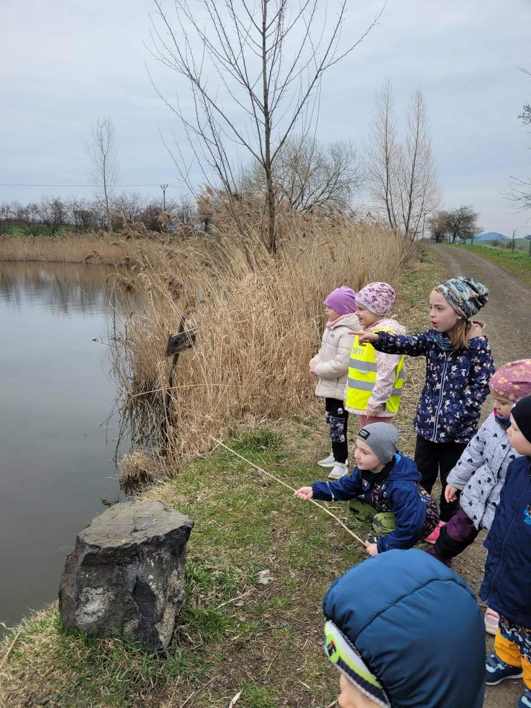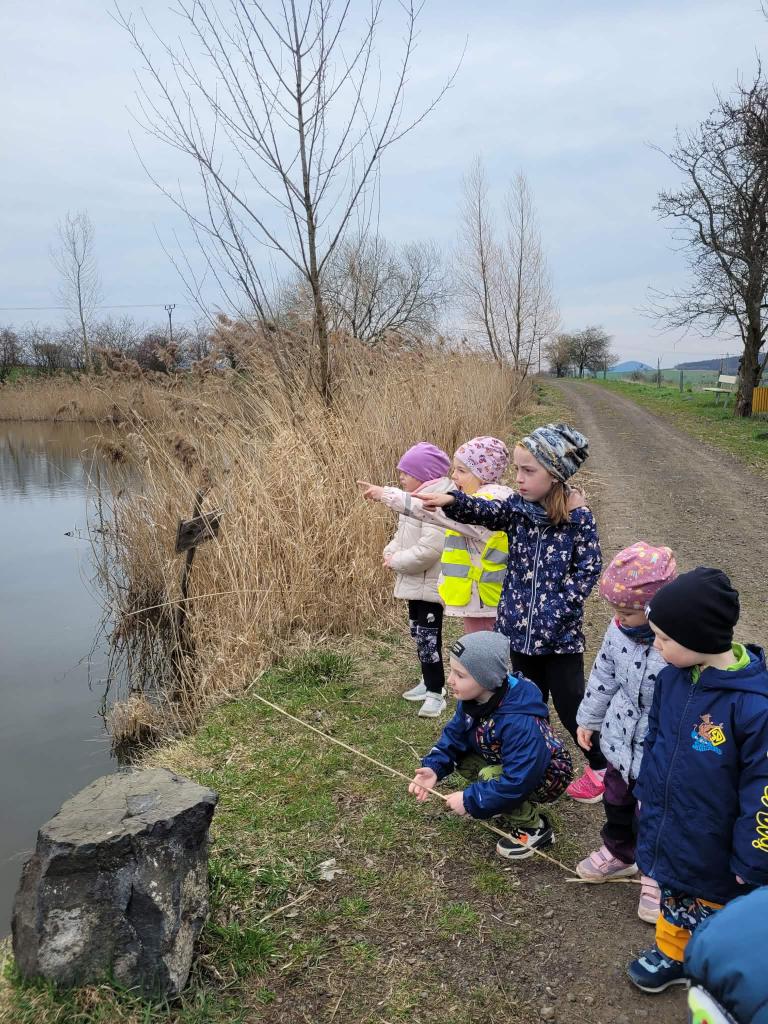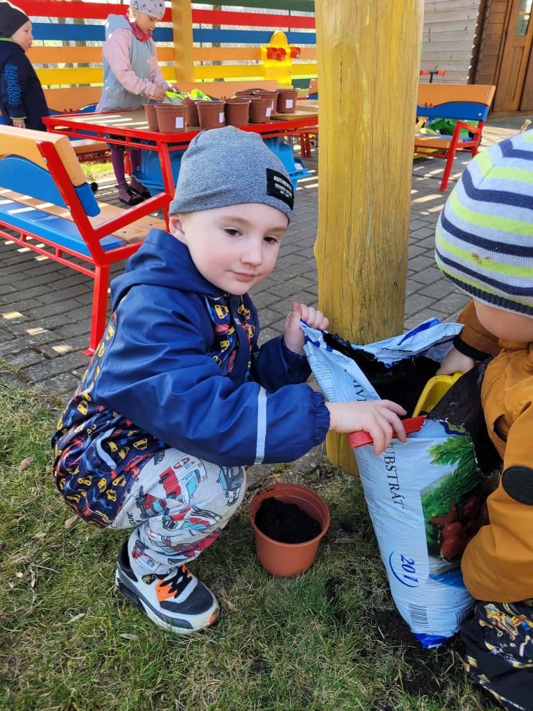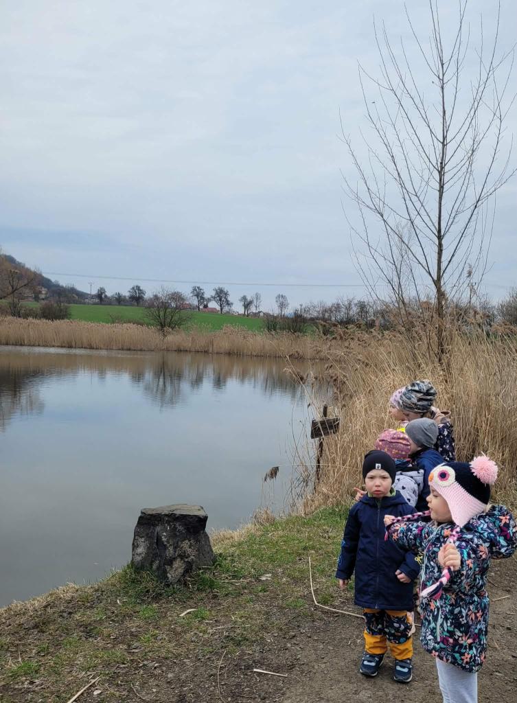 Děti si s radostí vysévají osení, poznávají jarní přírodu na vycházkách, hrají si na zahradě mateřské školy a všímají si velikonoční výzdoby v obci.