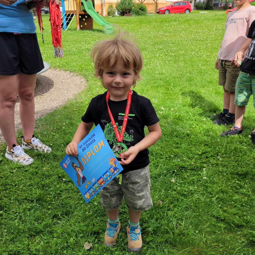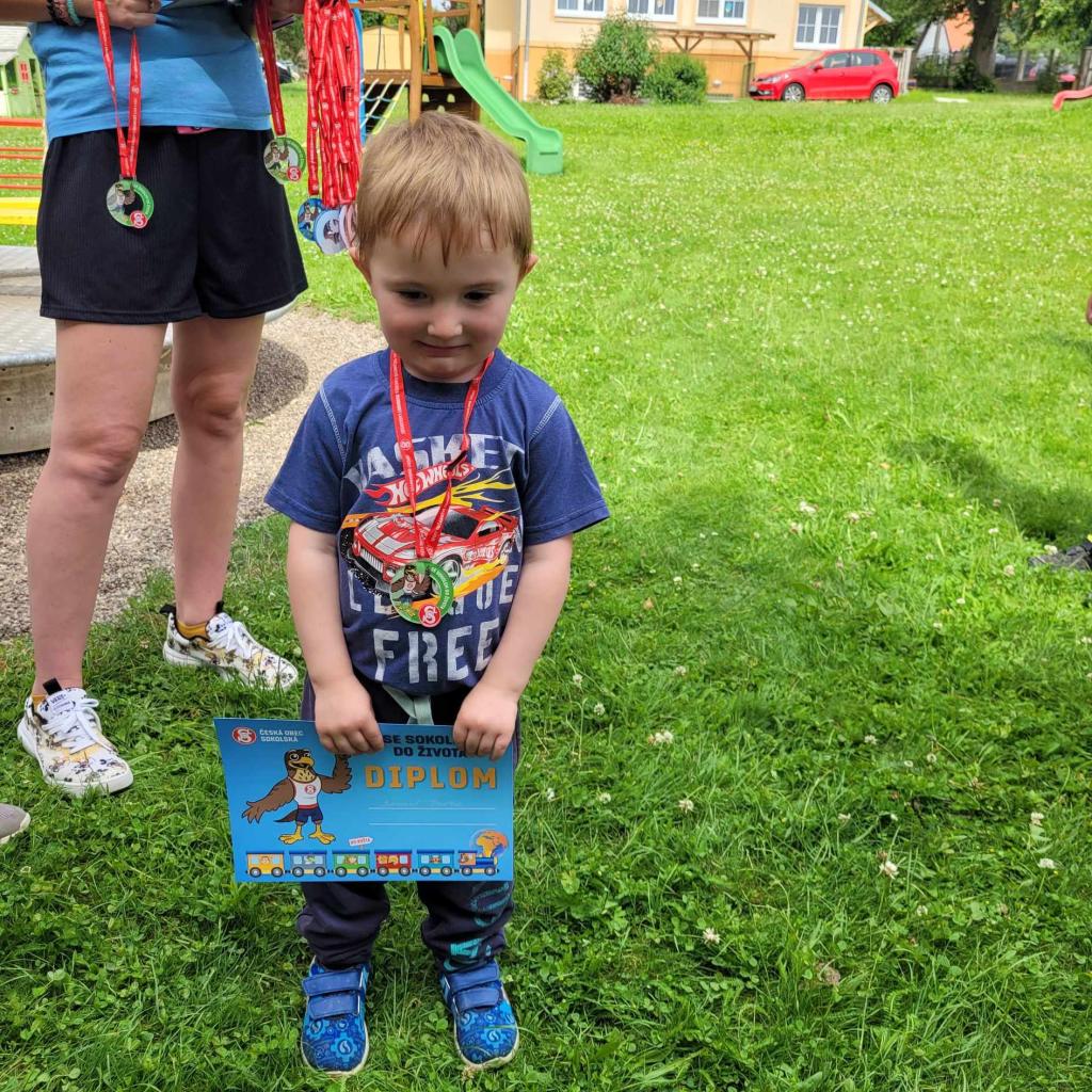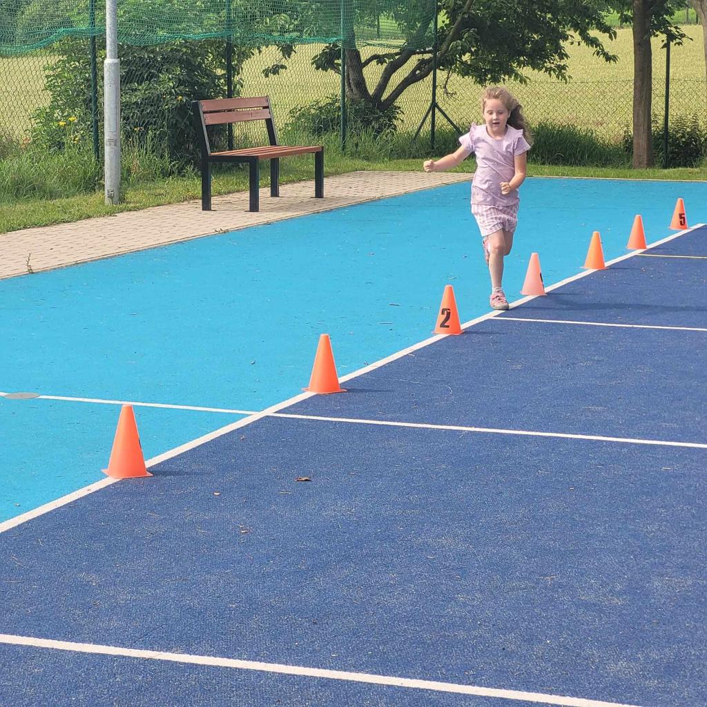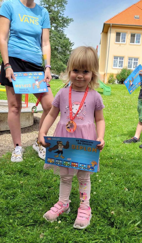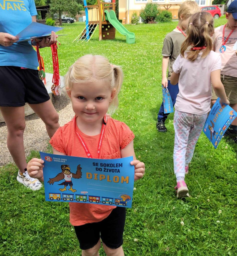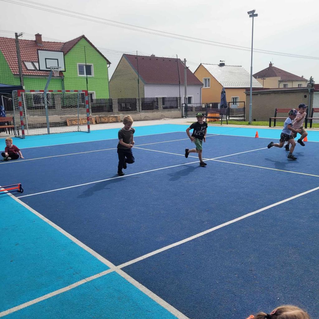 Sportovní den - Projekt Se Sokolem do života. Děti si vyzkoušely běh přes překážku, slalomový běh, běh na krátkou vzdálenost, skok do dálky.