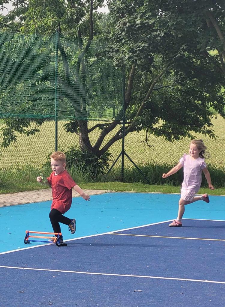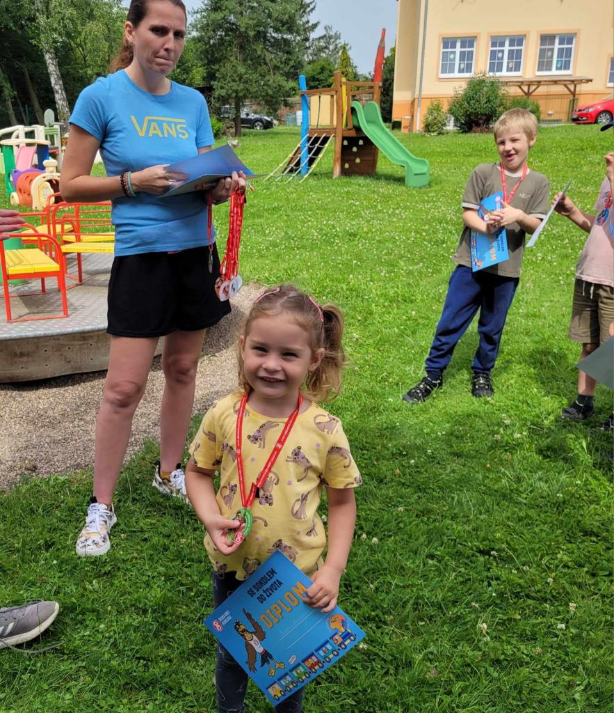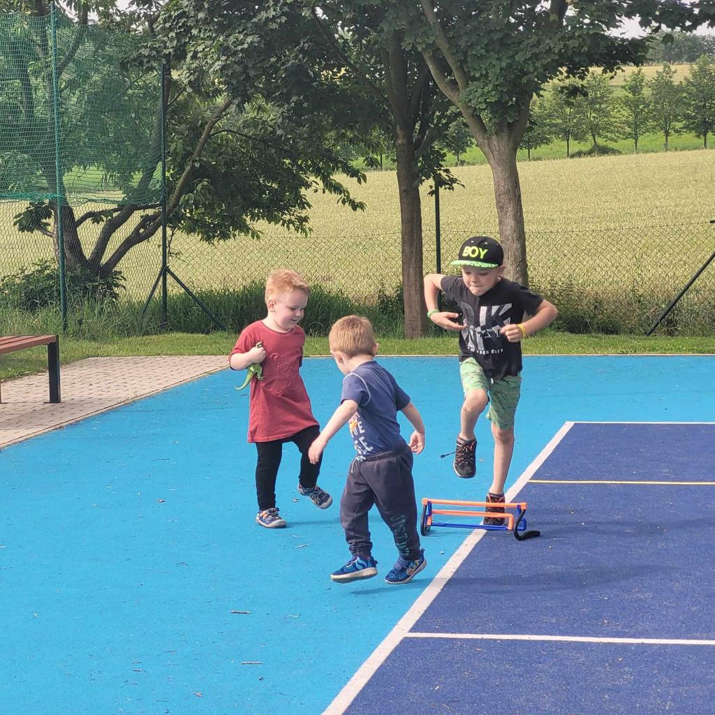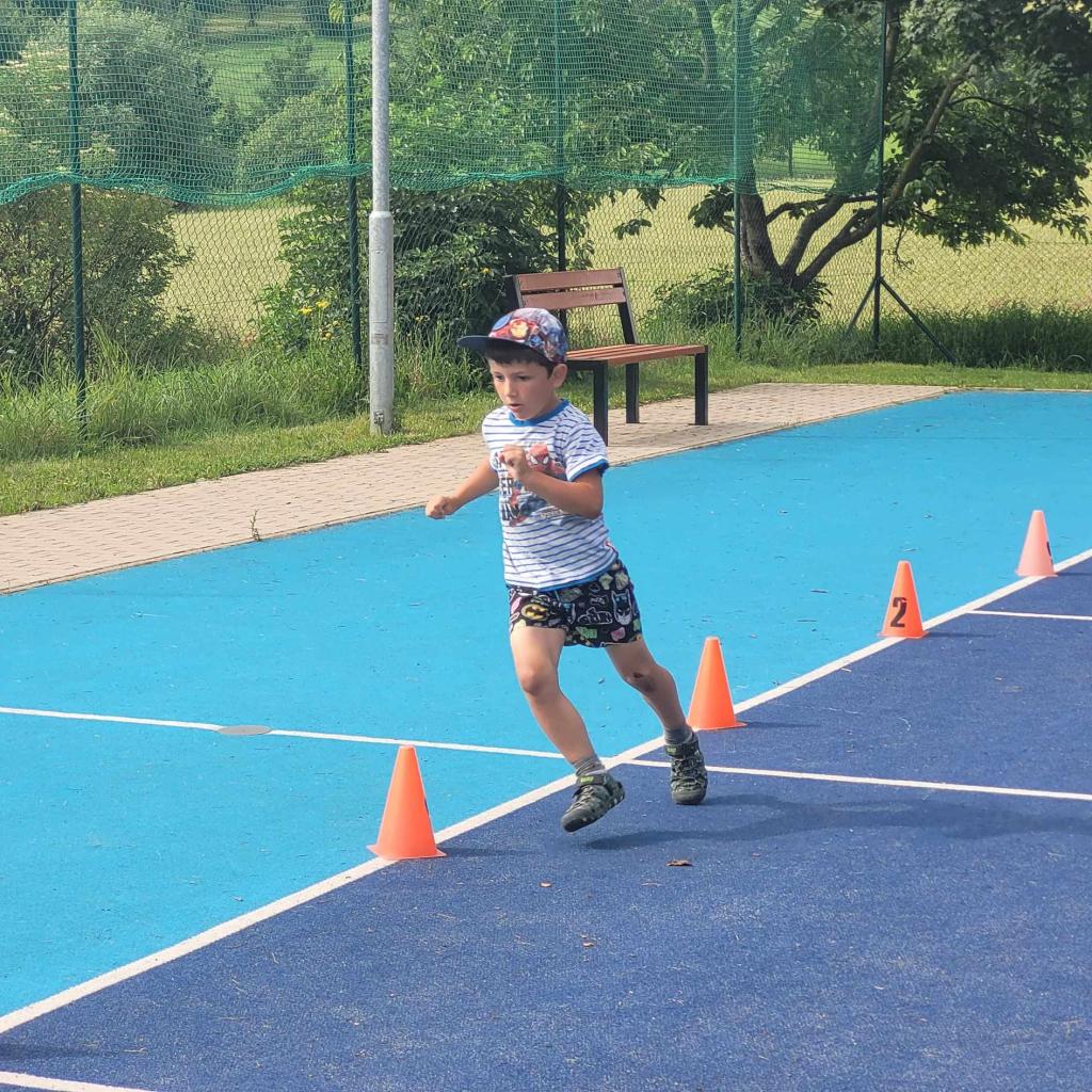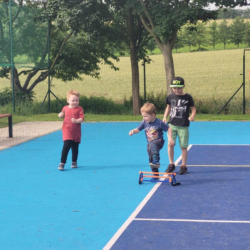 Sportovní den - Projekt Se Sokolem do života. Děti si vyzkoušely běh přes překážku, slalomový běh, běh na krátkou vzdálenost, skok do dálky.