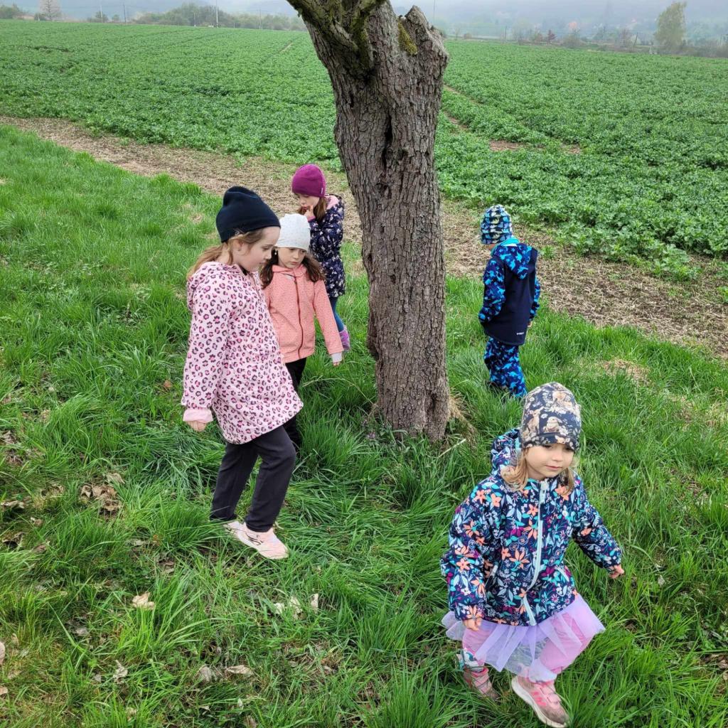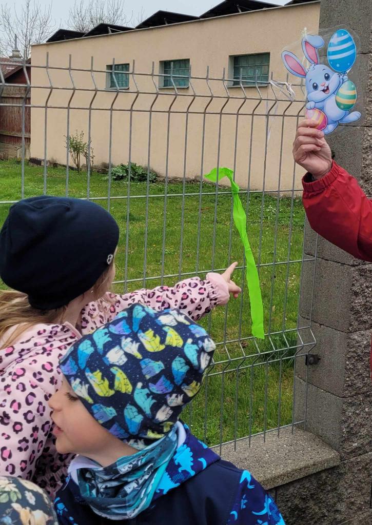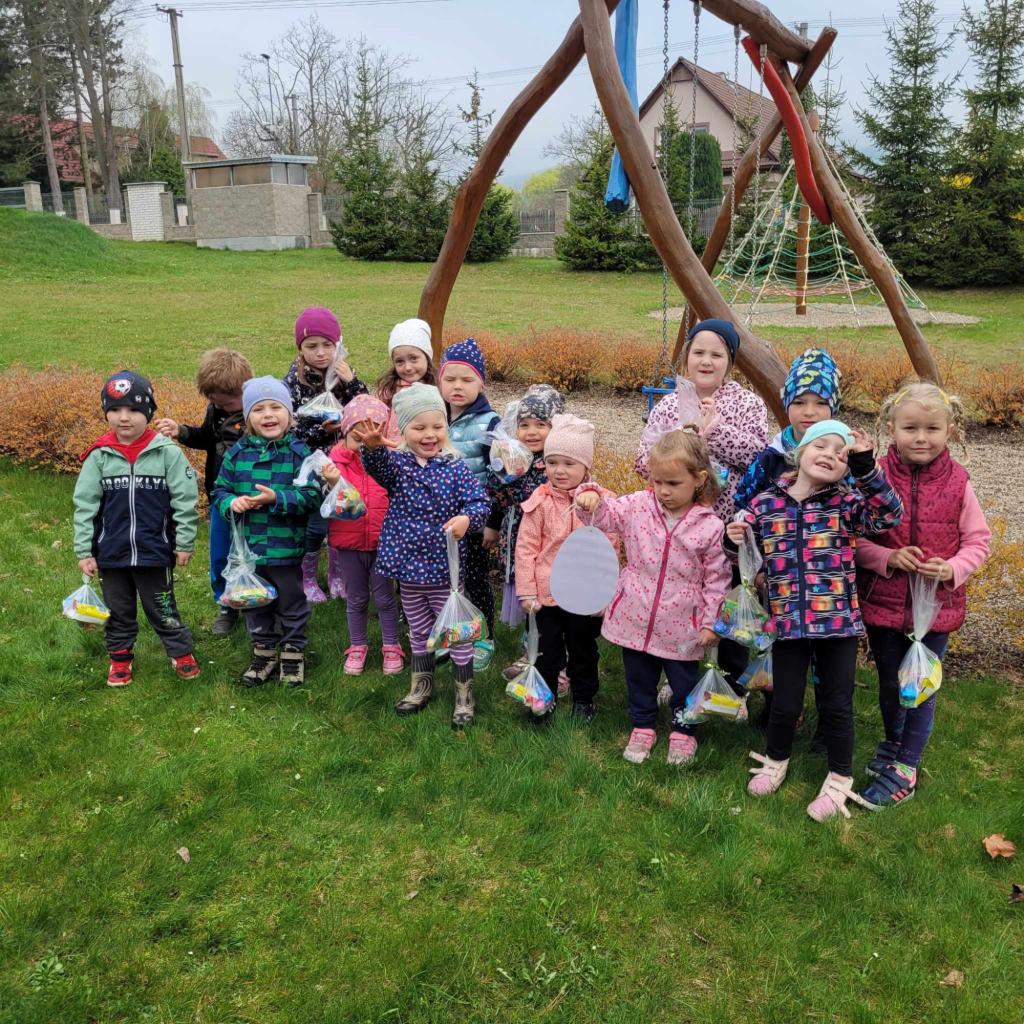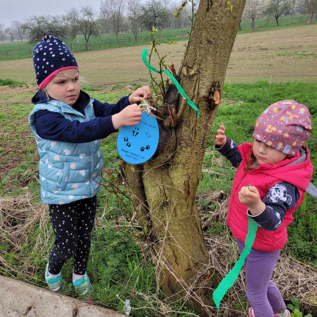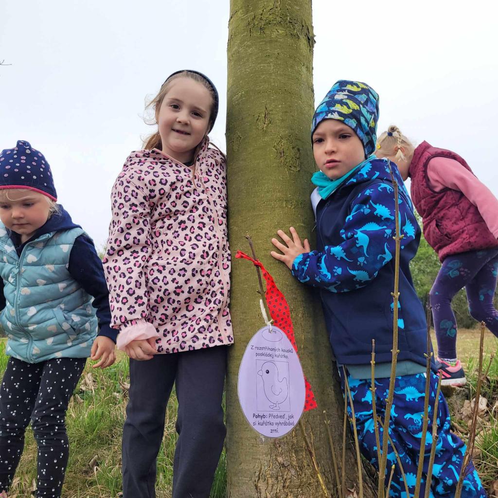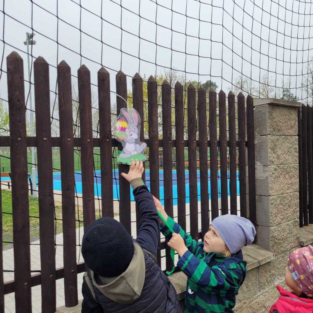 Děti plnily zajíčkovy úkoly, a poté hledaly na zahradě MŠ zajíčkův poklad.