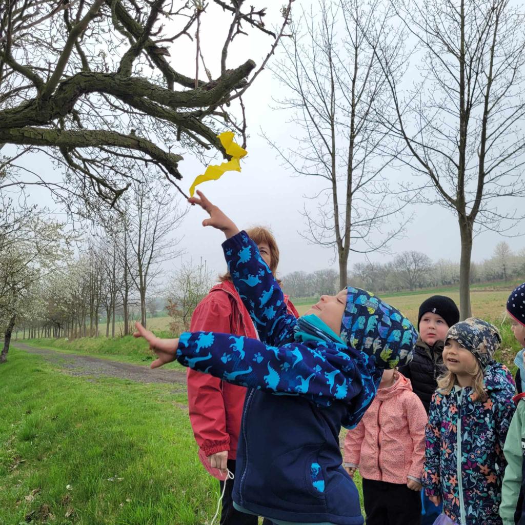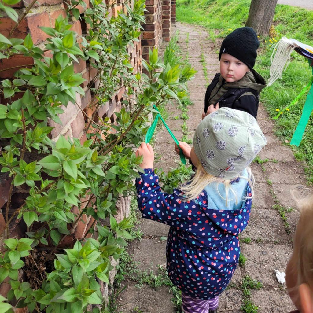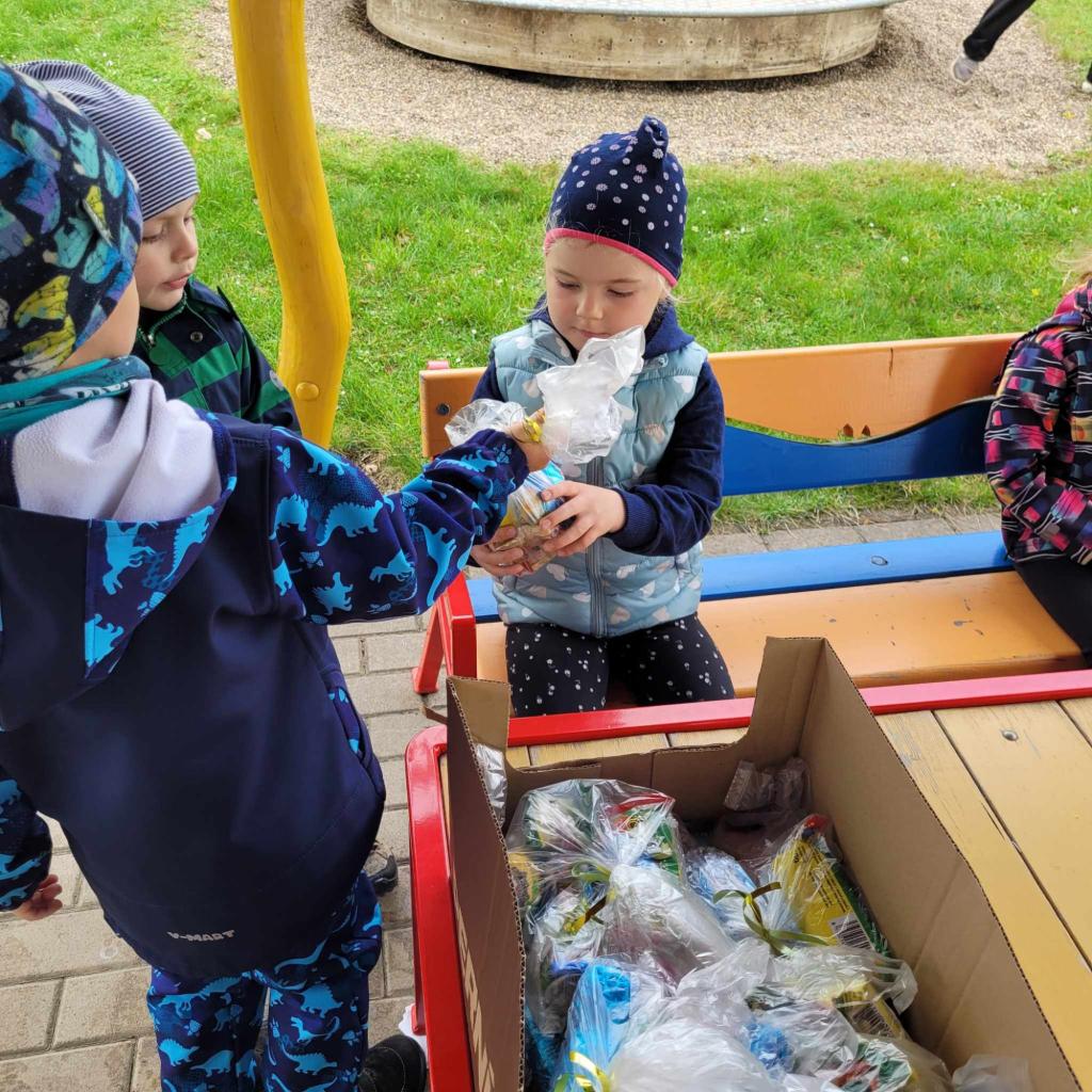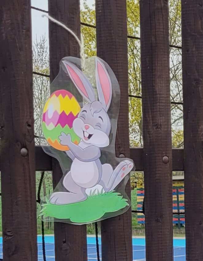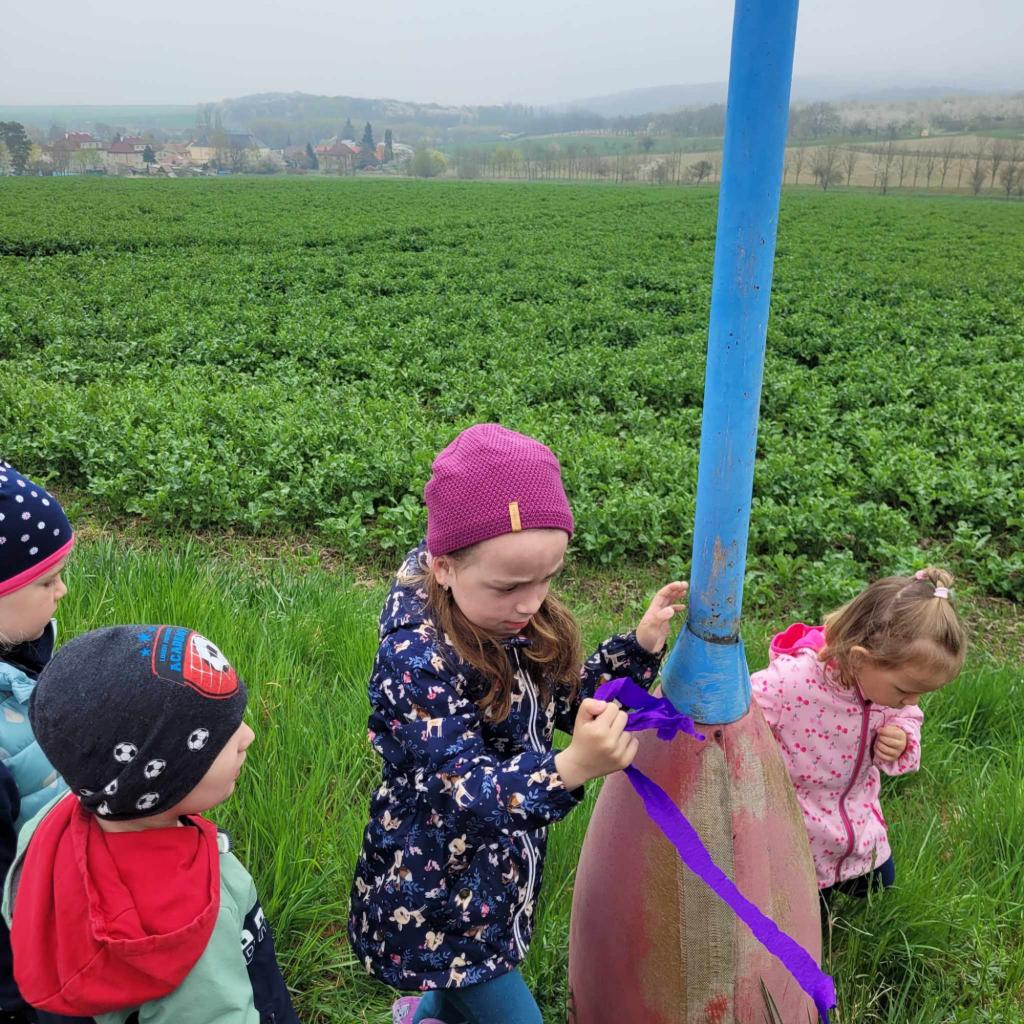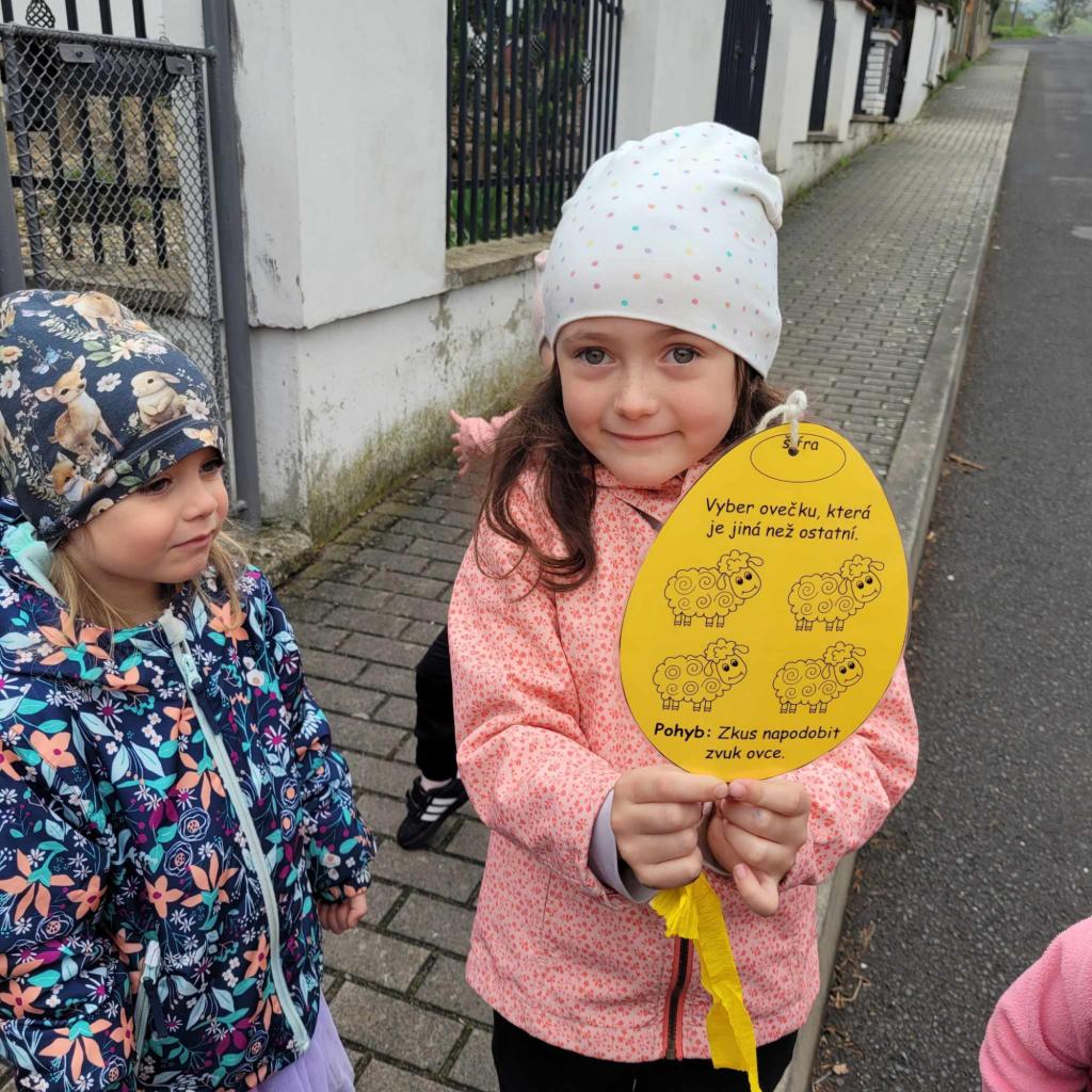 Děti plnily zajíčkovy úkoly, a poté hledaly na zahradě MŠ zajíčkův poklad.
