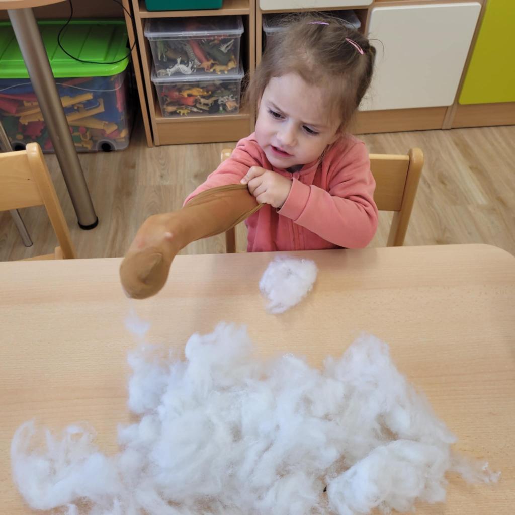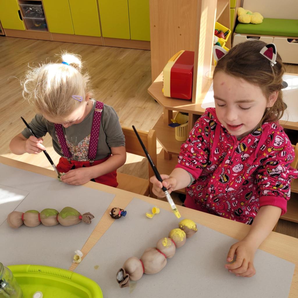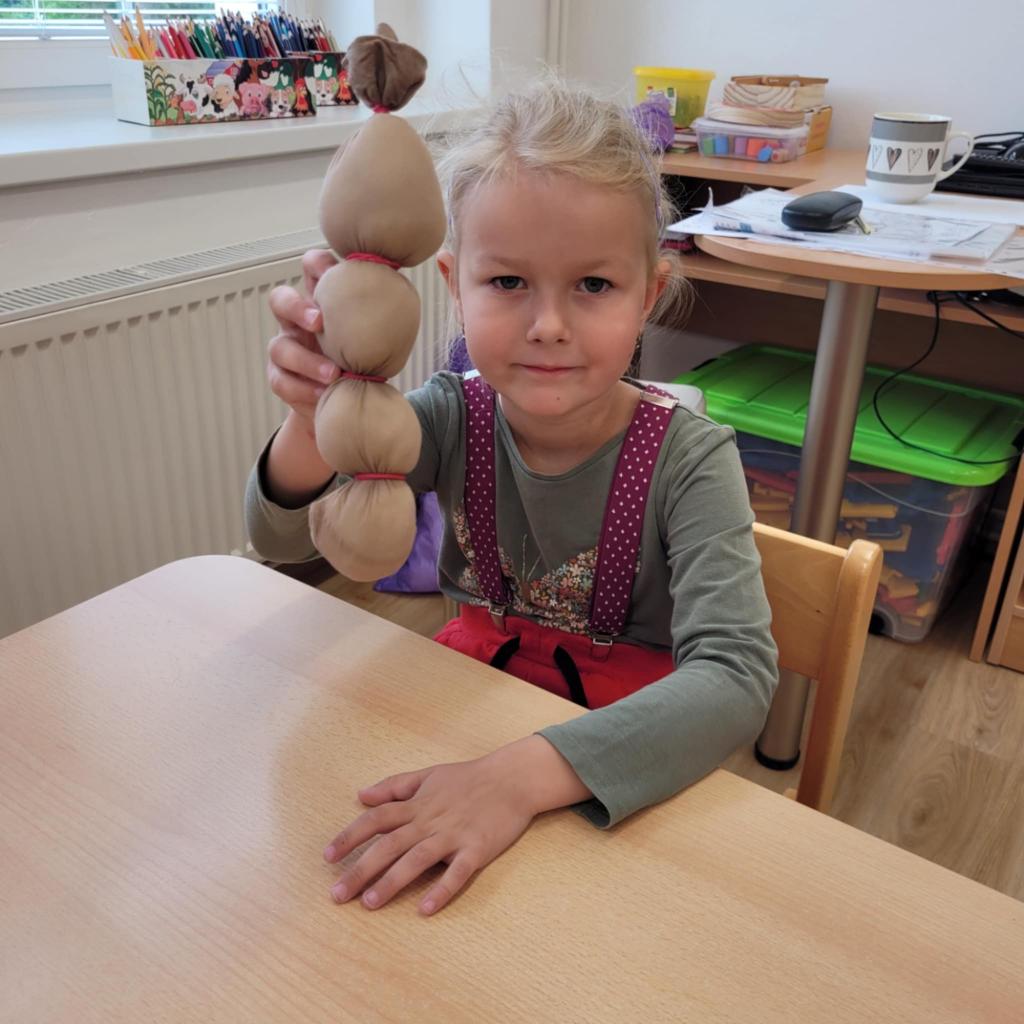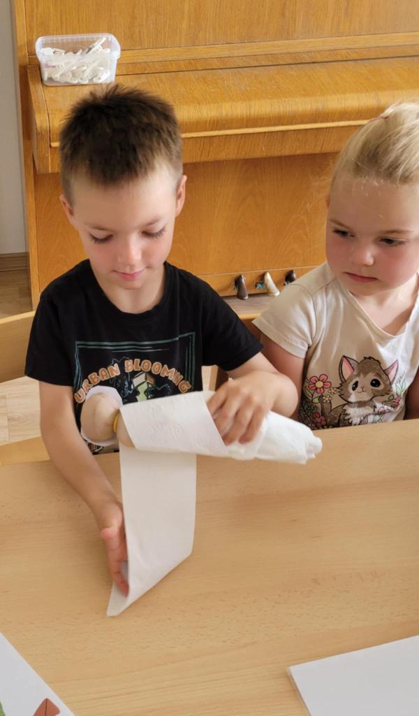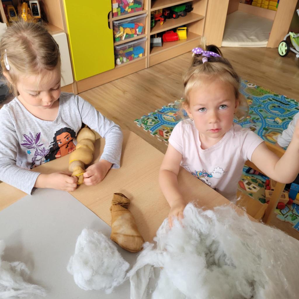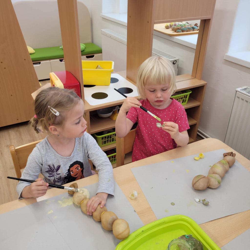 Děti pozorují hmyz v přírodě a seznamují se s cyklem motýla. Vyrábějí motýlky z ruliček a housenky z ponožek, které plní, tvarují gumičkami a tvoří jim oči. Nakonec housenky balí do papíru, aby znázornily zakuklení.