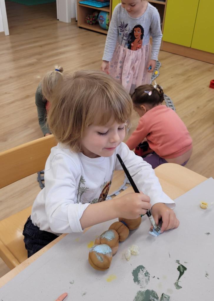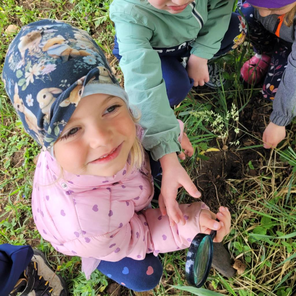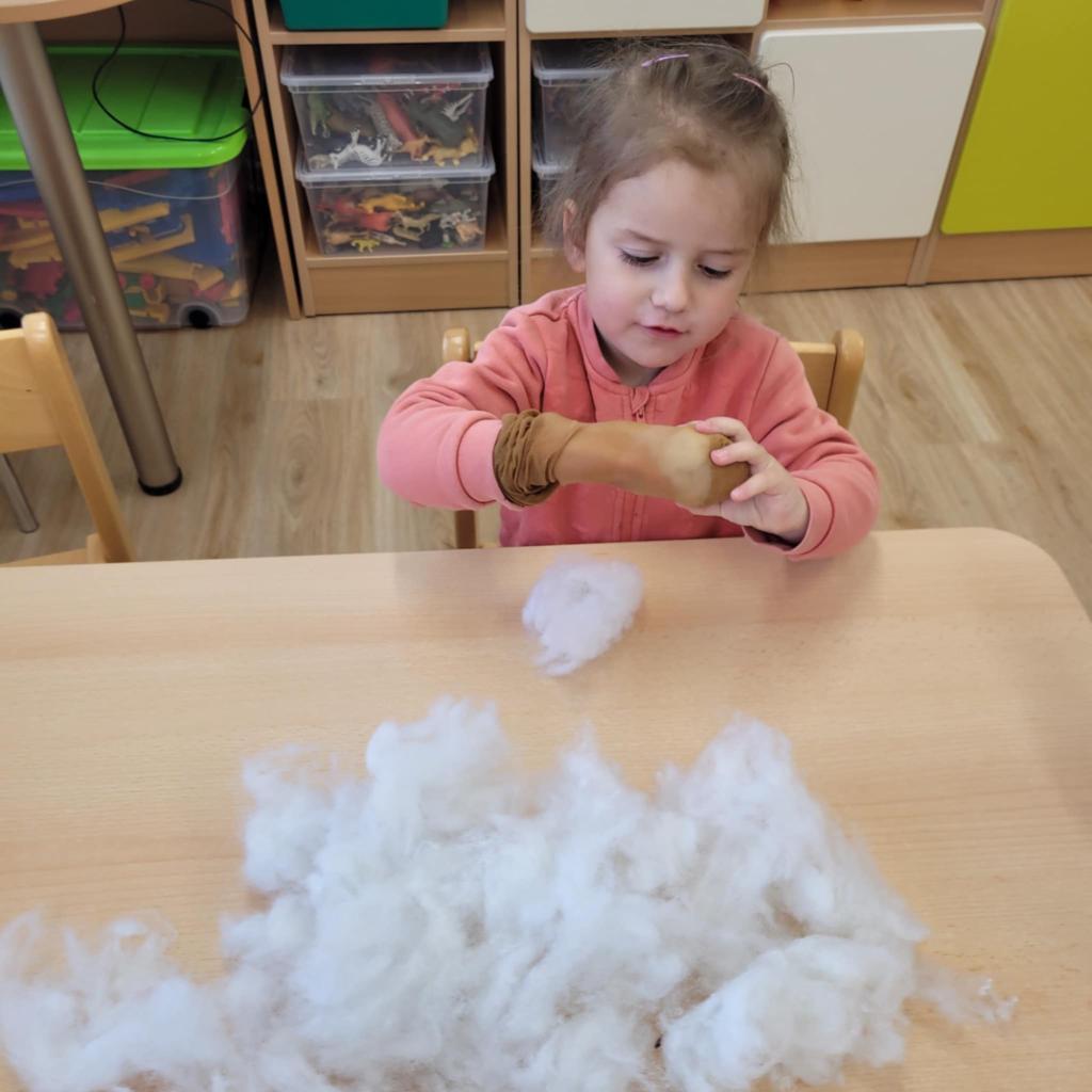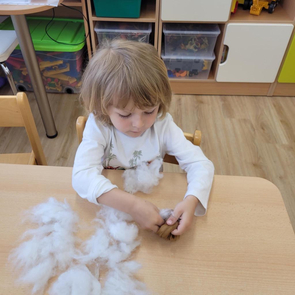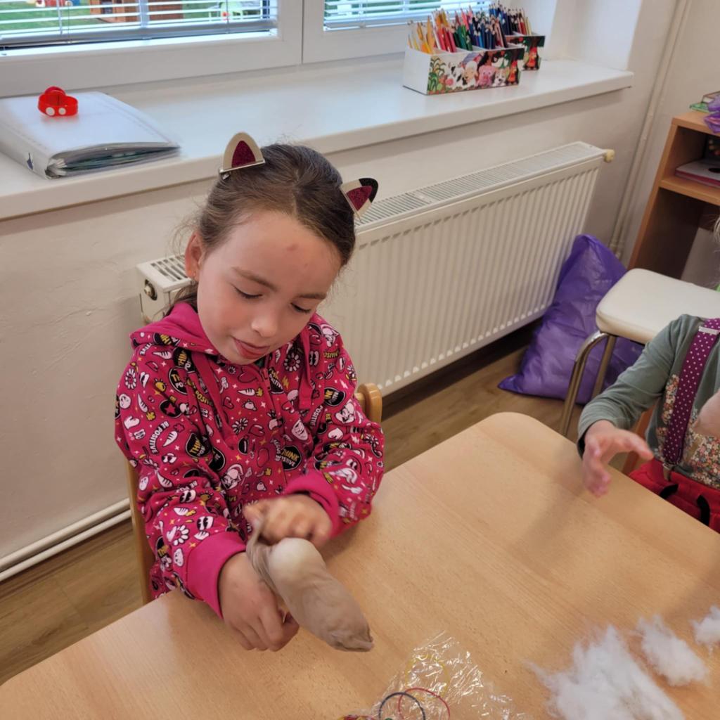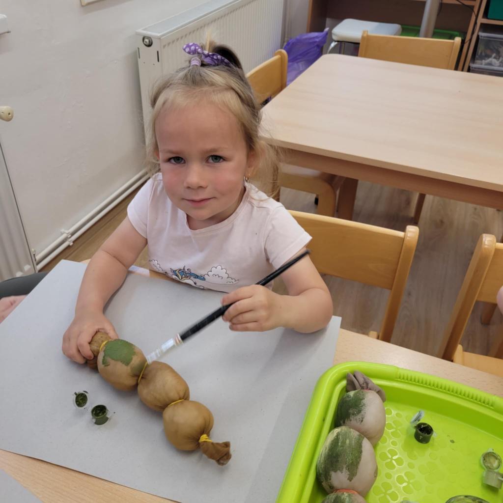 Děti pozorují hmyz v přírodě a seznamují se s cyklem motýla. Vyrábějí motýlky z ruliček a housenky z ponožek, které plní, tvarují gumičkami a tvoří jim oči. Nakonec housenky balí do papíru, aby znázornily zakuklení.