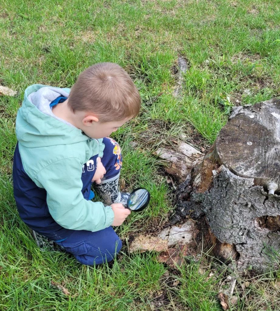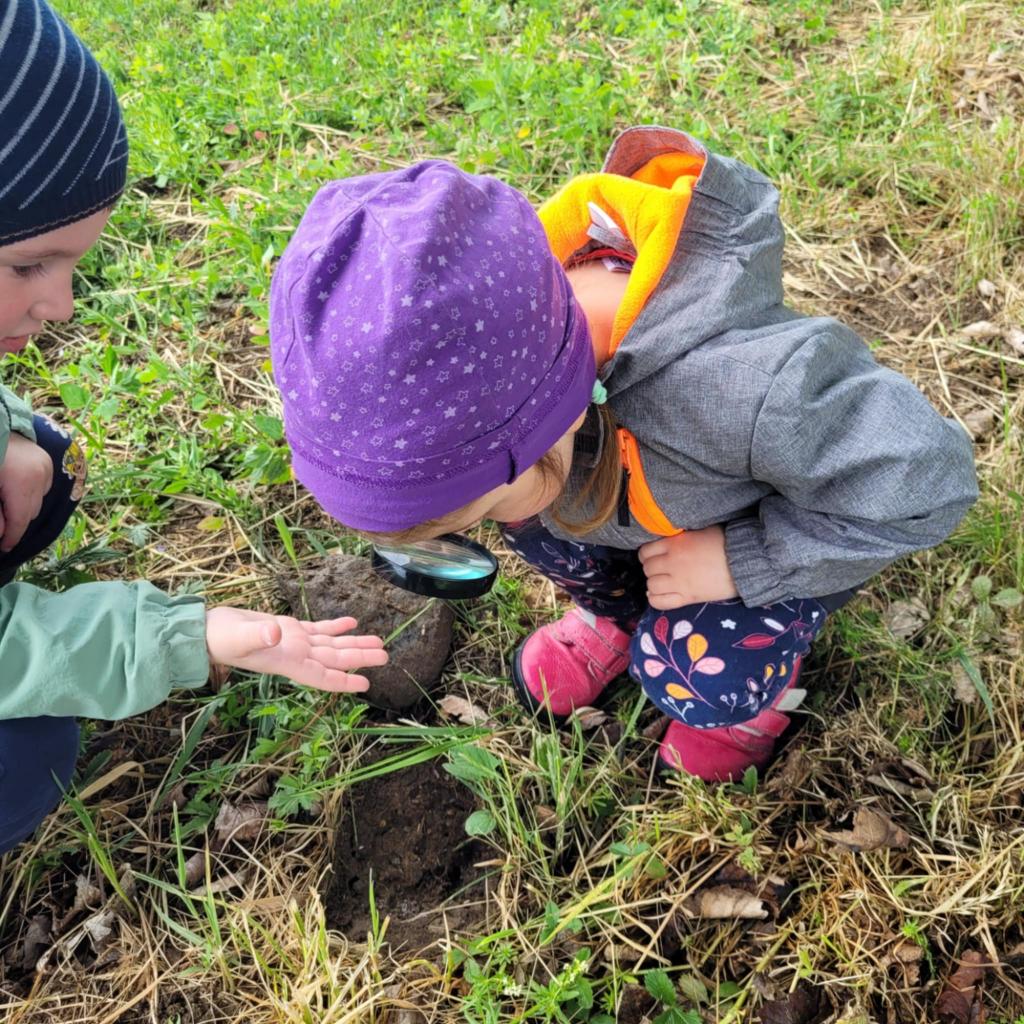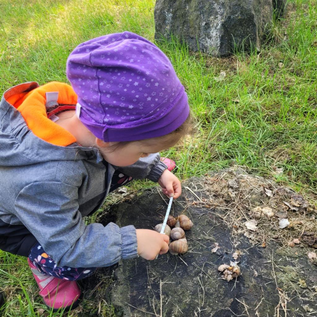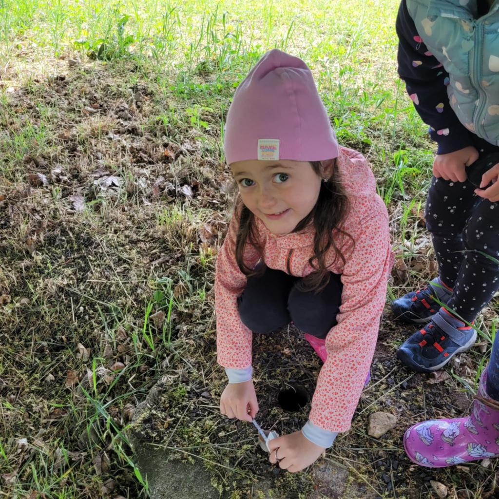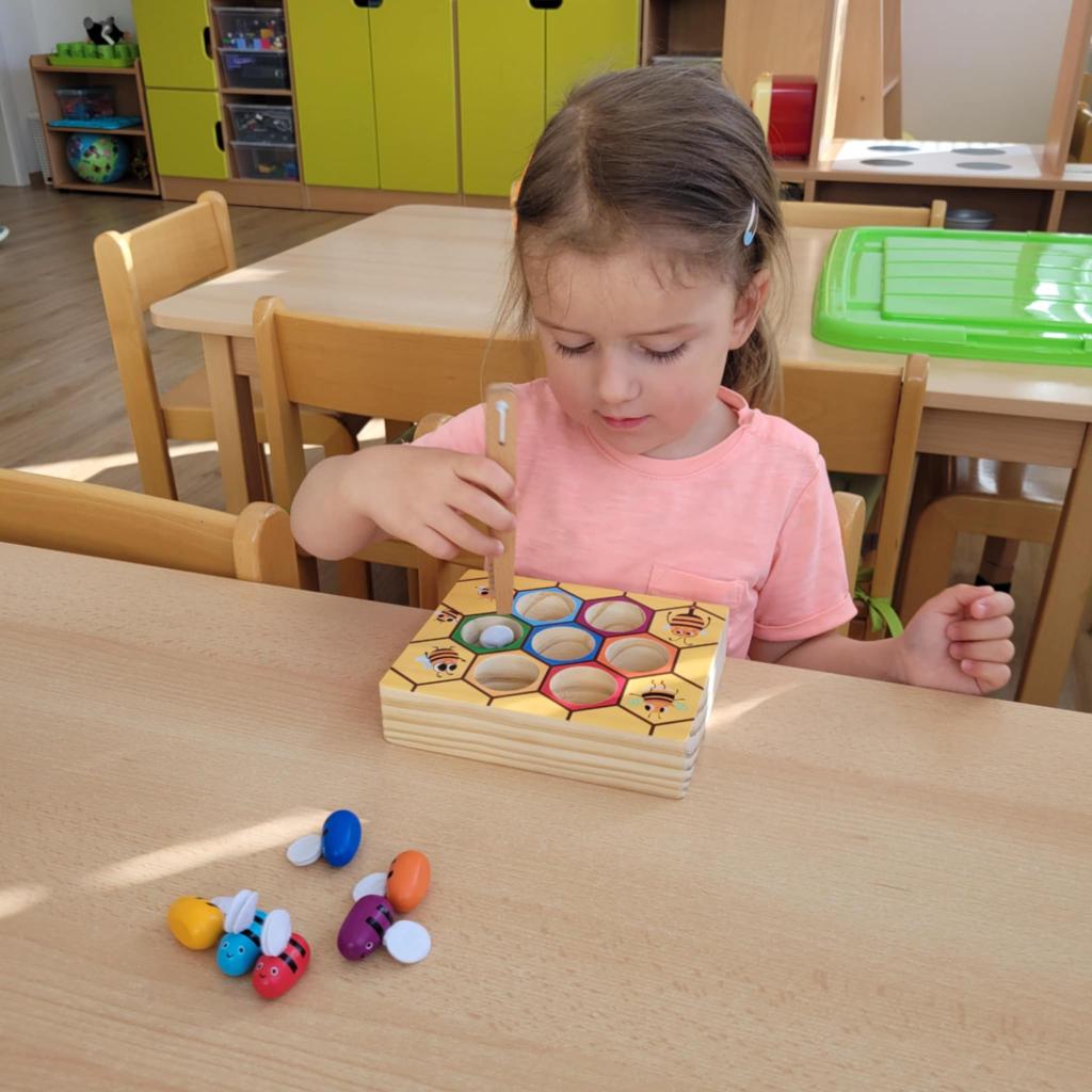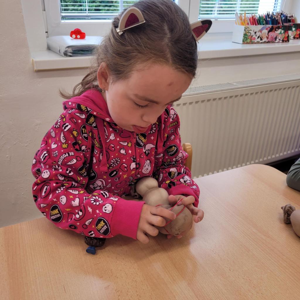 Děti pozorují hmyz v přírodě a seznamují se s cyklem motýla. Vyrábějí motýlky z ruliček a housenky z ponožek, které plní, tvarují gumičkami a tvoří jim oči. Nakonec housenky balí do papíru, aby znázornily zakuklení.