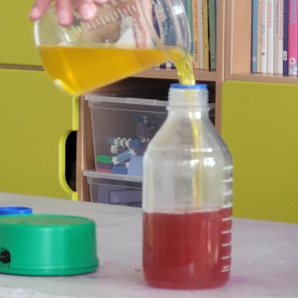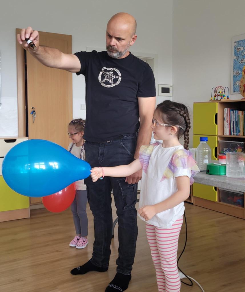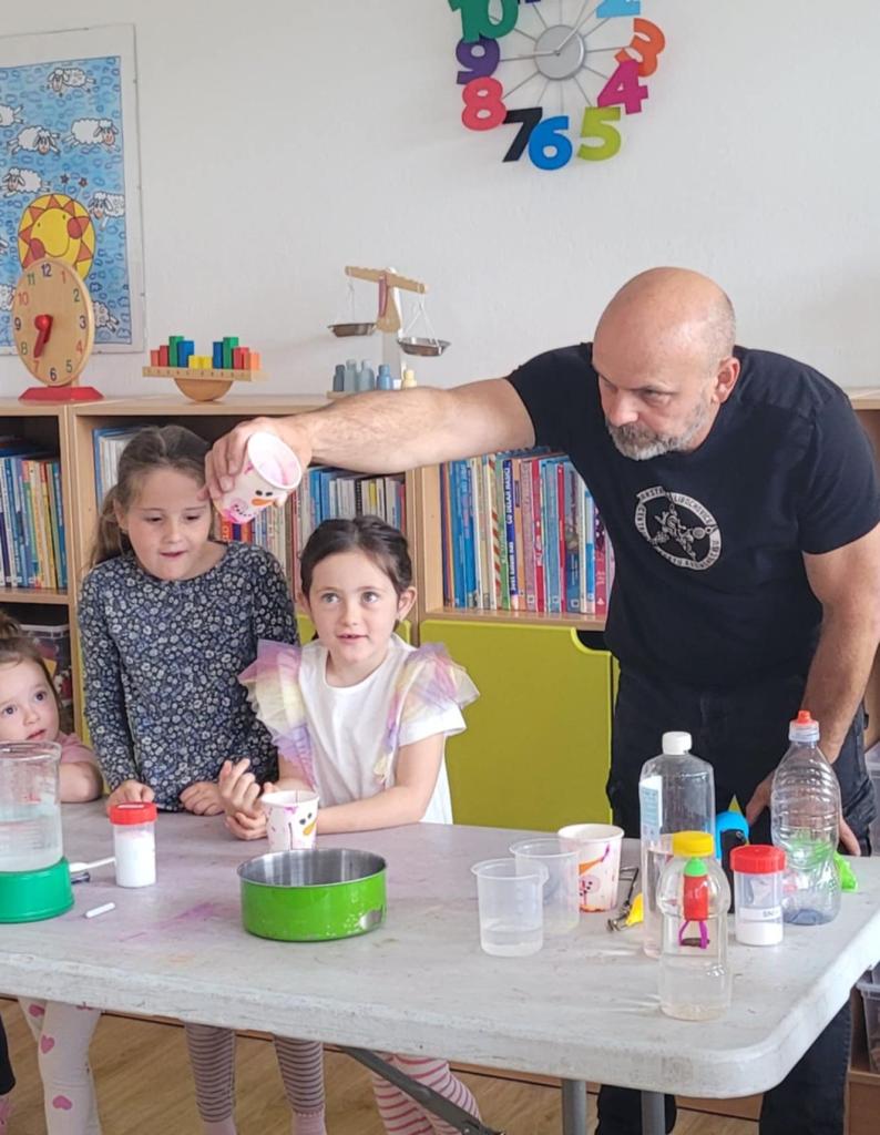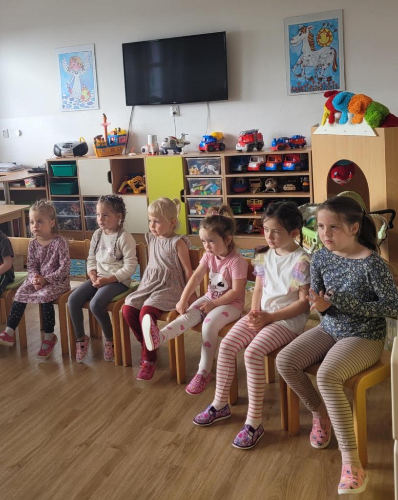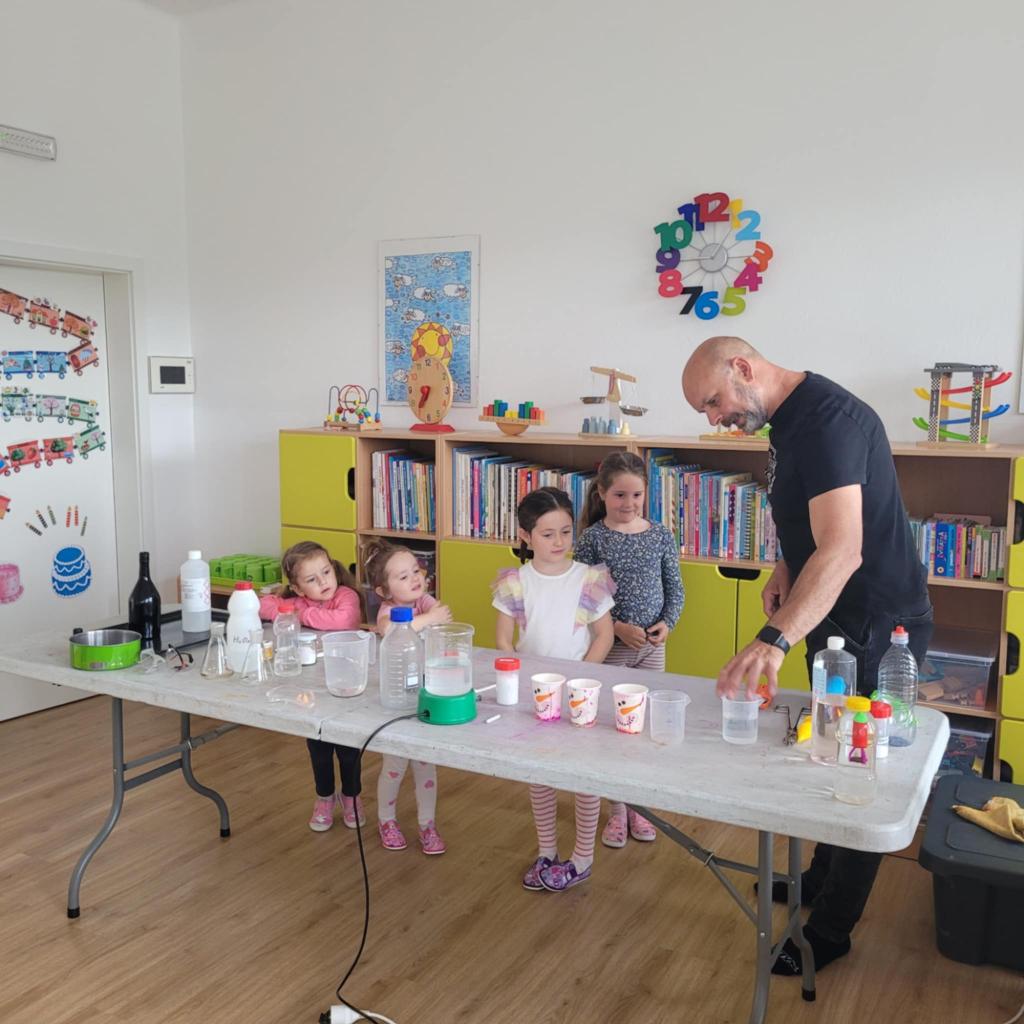 Děti v mateřské škole s nadšením sledovaly vědeckou show plnou zábavných pokusů. Obdivovaly měnící se barvy, páru i bublající směsi. Některé pokusy si samy vyzkoušely a objevování je moc bavilo.