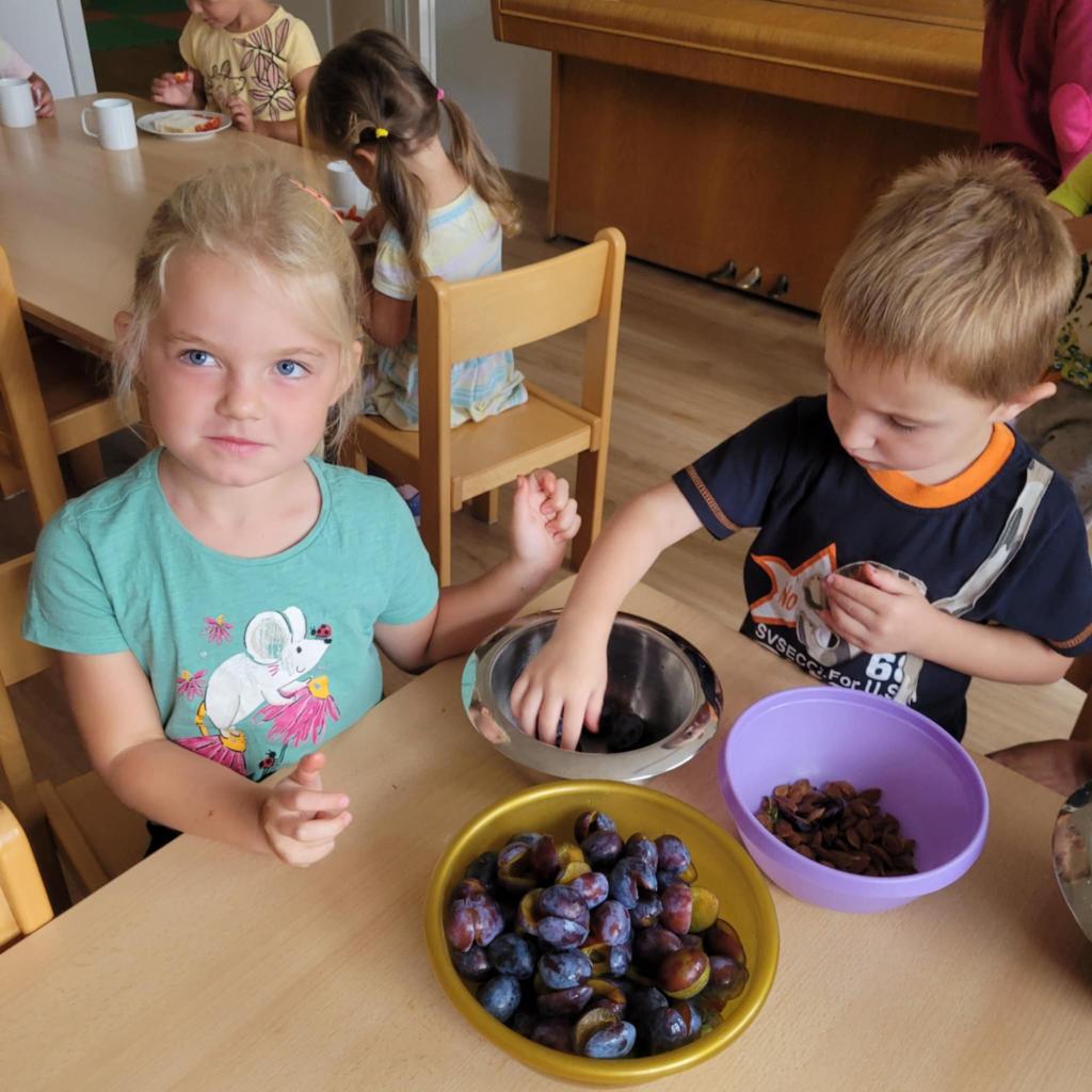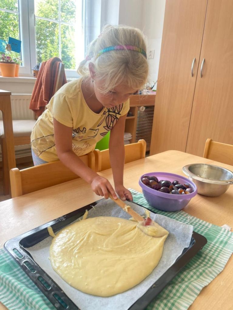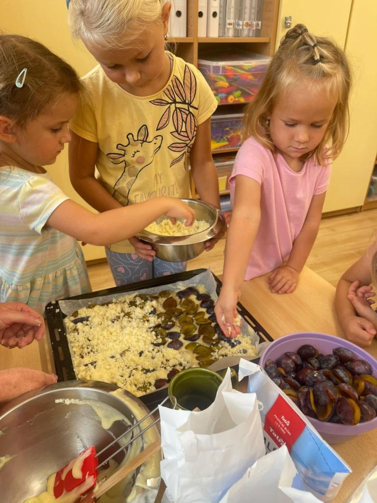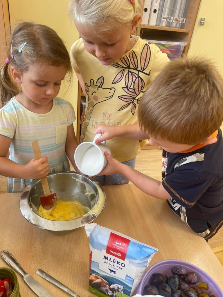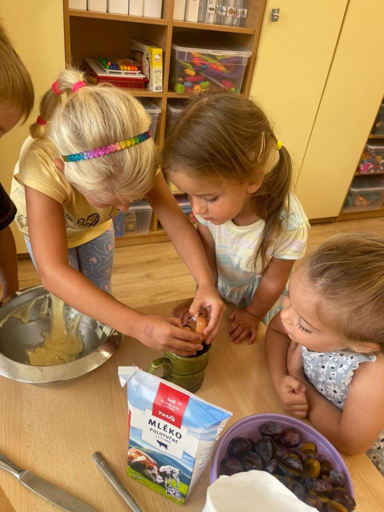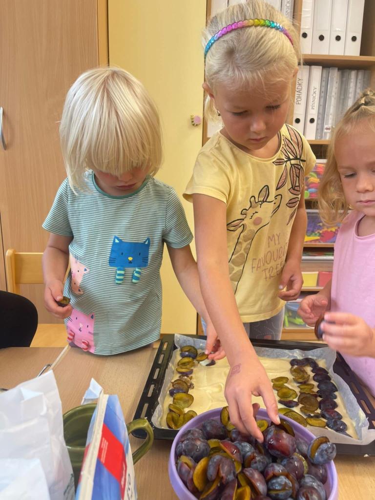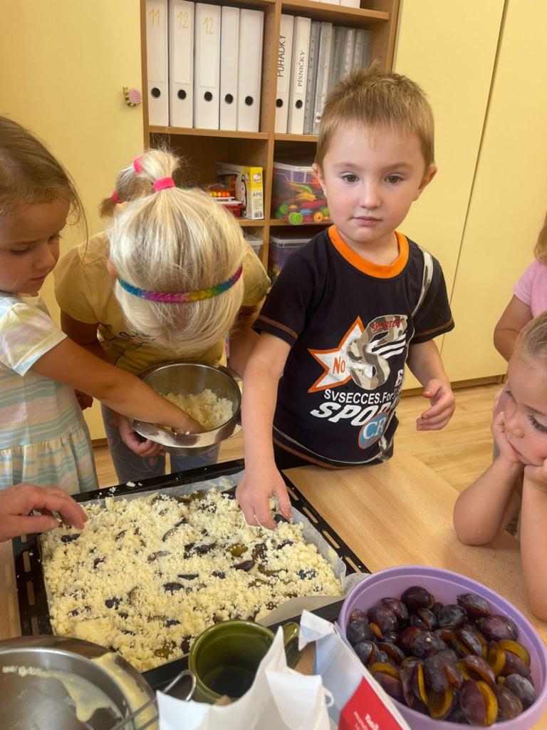 Děti si užily voňavé dopoledne při pečení švestkového koláče. Celý proces - od přípravy až po samotné pečení- byl nejen zábavný, ale i přínosný pro rozvoj různých dovedností. Procvičovali jsme jemnou motoriku, matematické představy, spolupráci, komunikaci, samostatnost, smyslové vnímání.